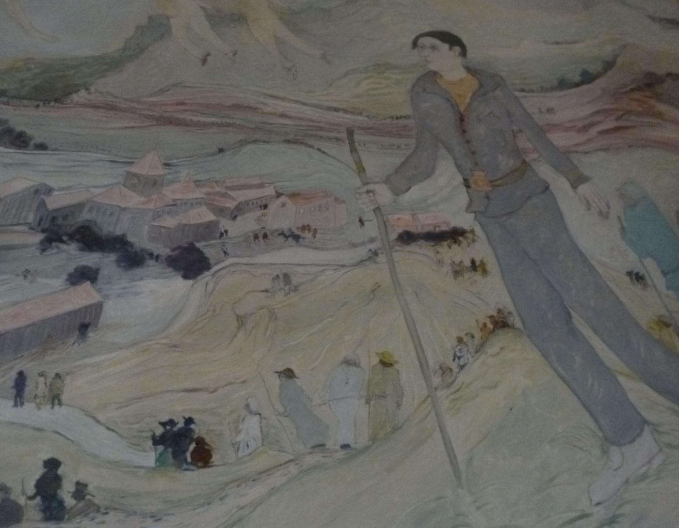 Titelfoto: Ein Ausschnitt des Gemäldes „Saint Jacques sur les chemins de Compostelle“ von Jean Fusaro (*1925) in der Kirche von Saint-Jacques-des-Arrêts, Frankreich