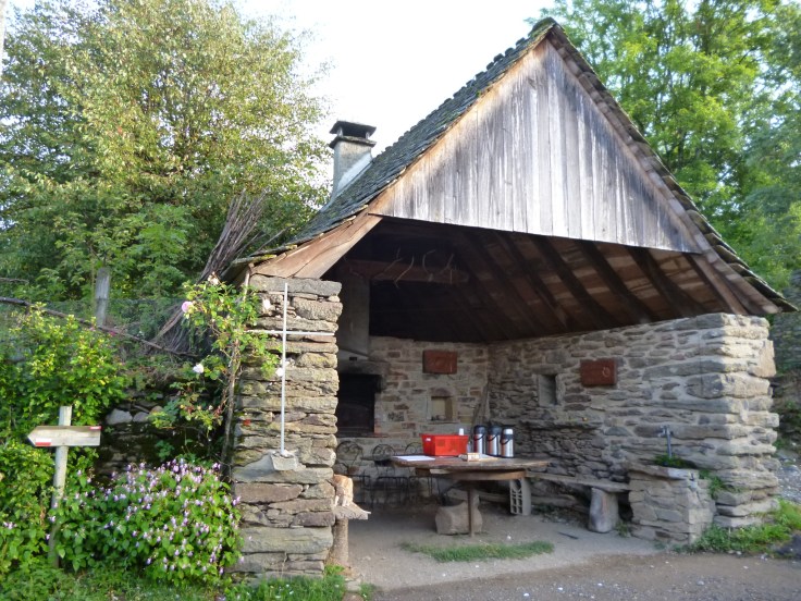 In L’Estrade befand sich eine überdachte Rastgelegenheit für Pilger mit warmen Getränken. Wir nahmen sie lediglich zur Kenntnis, weil wir gerade gefrühstückt haben, aber ich kann mir vorstellen, dass sie vorbeiziehende Wanderer als eine willkommene Oase der Erholung ansehen würden. Da sie auch in einigen Pilgerbüchern erwähnt wird, gehe ich davon aus, das es sich hierbei um ein dauerhaftes Angebot handelt.