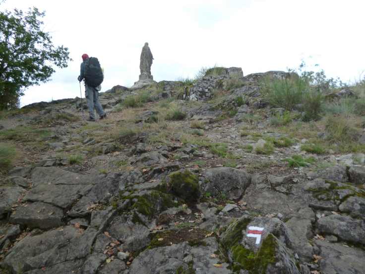 Der Pfad schlängelte sich über den Berghang. Auf dem Gipfel liefen wir noch zur Madonnenstatue La Vierge Notre Dame-de-Vermus, die sich auf einem Felsen hoch über dem Lottal und Espalion befindet.