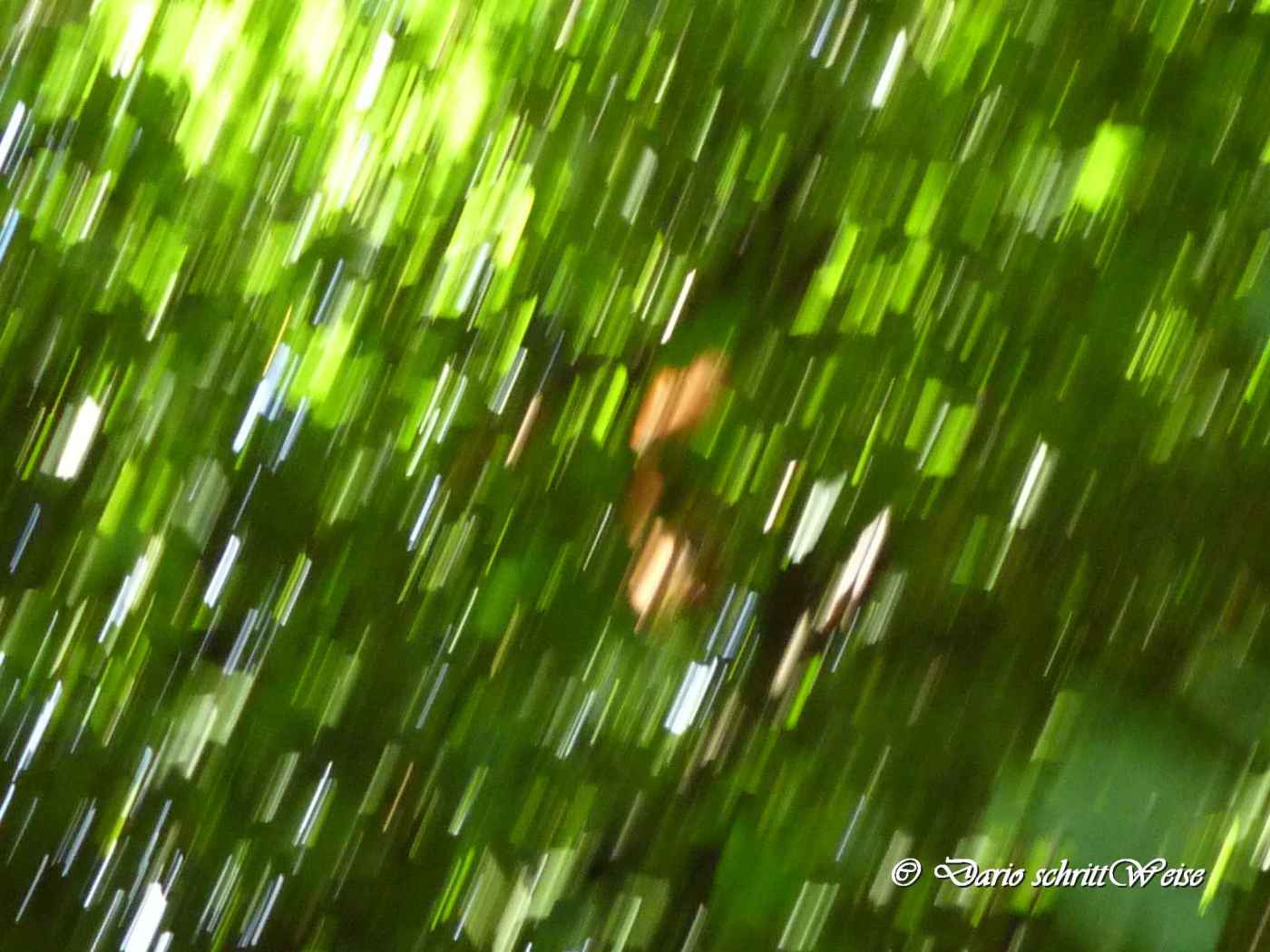 Nun, ich war damals auf der fotografischen „Jagd“ nach einem Eichhörnchen, siehe in der Mitte. Es wollte einfach nicht stillhalten. Ich war auch ein wenig aufgewühlt, weil ich befürchtete, dass es ganz verschwindet. Ich habe auch nicht darauf geachtet, ob das Foto verwackelt wird oder nicht. Diese Aufregung habe ich auch unbewusst im Foto zum Ausdruck gebracht. Es ist eine Michung. So gesehen war das Eichhörnchen 🐿️ meine Muse, die mich zu diesem Foto inspiriert hat 😉