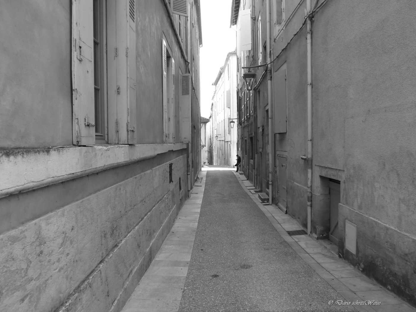 Für mich sieht es eher so aus, als hätte sich die Person zurück gezogen, denn sie steht im dunklen Teil der Straße, ein paar Schritte die schattige Gasse rein. Vielleicht nochmal kurz inne halten, sich dabei auf etwas konzentrieren. …. aber vielleicht ist es in der Sonne auch nur zu heiß und das Licht zu grell. Jedenfalls scheint die Person in etwas vertieft und entspannt zu sein.