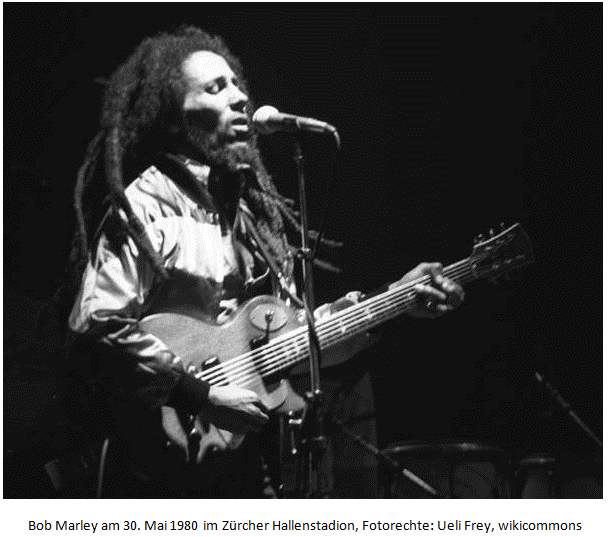 Titelfoto: Bob Marley am 30. Mai 1980 im Zürcher Hallenstadion, Fotorechte: Ueli Frey, https://commons.wikimedia.org/wiki/File:Bob-Marley-in-Concert_Zurich_05-30-80.jpg https://www.deutschlandfunkkultur.de/bob-marley-vom-fahrradmechaniker-zum-reggae-gott.2165.de.html?dram:article_id=469663 https://www.br.de/radio/bayern2/sendungen/nachtmix/playback/bob-marley-playback100.html https://www.swr.de/swr1/bw/musik/Rhythmus-Rastafaris-und-Bob-Marley-Ein-Abend-voller-Reggae,reggae-swr1-der-abend-bob-marley-75-100.html