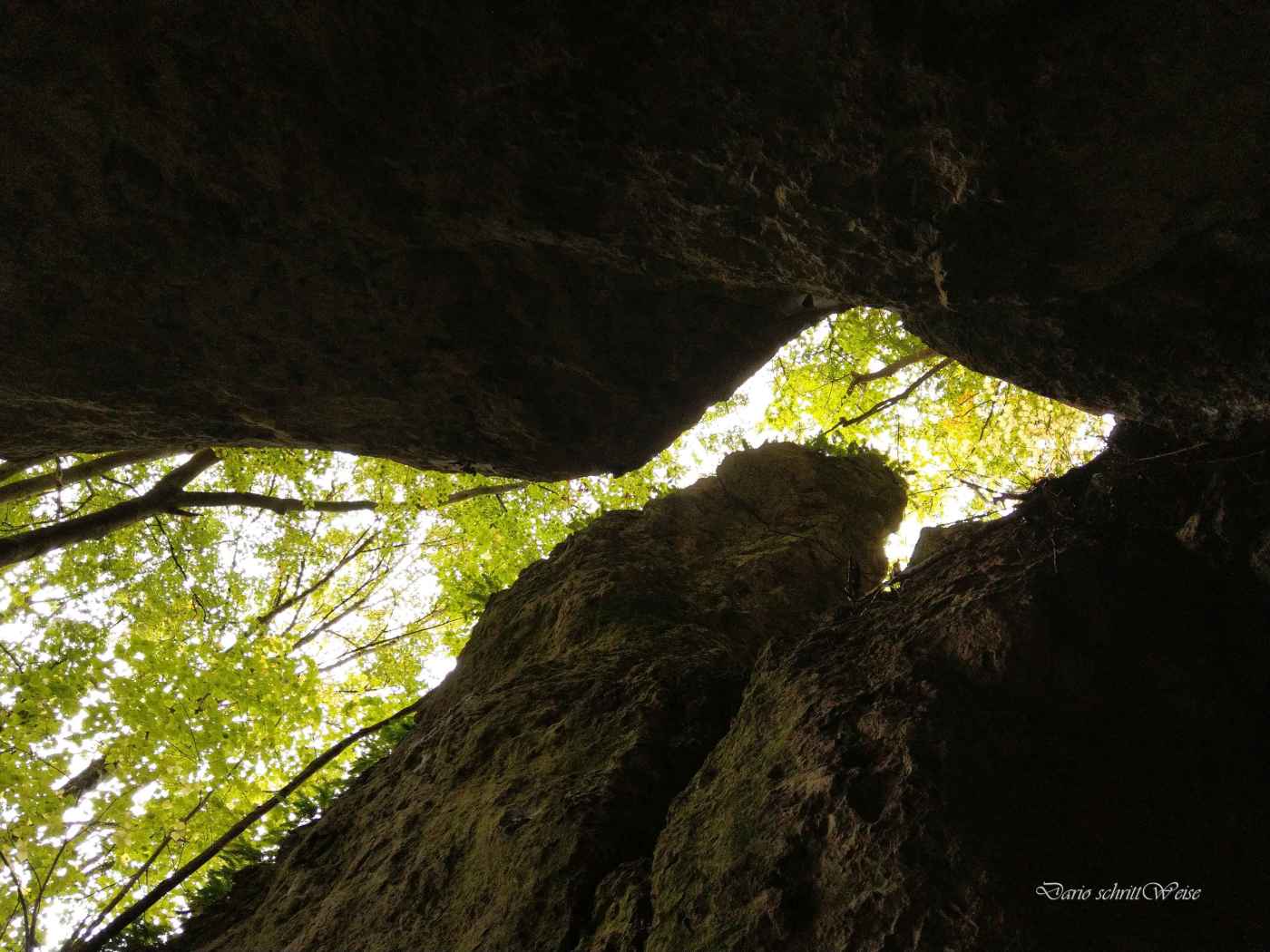 „Bitte gut festhalten“, übertönte der schwitzende Wagenlenker den Krach, „ich habe eine Felsspalte gesehen. Sie ist groß genug für uns.“