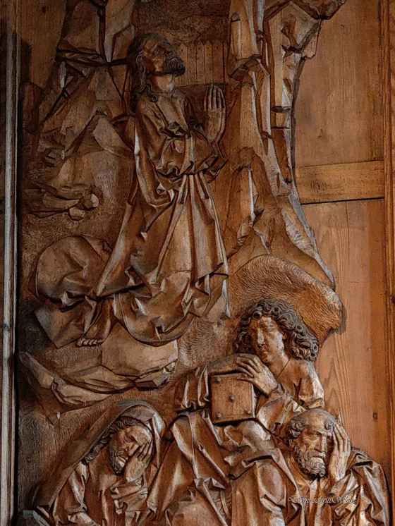 Das Riemenschneider-Retabel von Detwang fand ich beeindruckend. Mich störte es dabei auch nicht, dass das Kunstwerk scheinbar unvollständig ist. Die Figuren und die Hintergründe wurden von Riemenschneider und seiner Werkstatt sehr filigran geschnitzt. Die von den drei Reliefs erzählte Geschichte der Auferstehung wird sehr detailliert dargestellt.