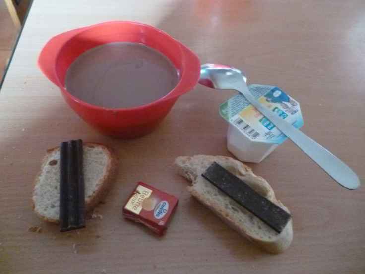 Wer sich das einfache Frühstück ansieht, mag vielleicht überrascht sein. Zwei kleine Scheiben Weißbrot, Butter, Joghurt, zwei Schokostangen und Kakao. Insbesondere die Gesundheitsbewussten unter den Leserinnen und Lesern werden nicht begeistert sein, aber ich erinnere mich, damals waren wir genügsamer. Und außerdem ist es in vielen Ländern üblich, derartiges Frühstück zu bekommen. Ich denke da beispielsweise an Frankreich, Italien oder Spanien. Das ist für mich ein Beispiel für die Einfachheit, die dort gelebt wird.