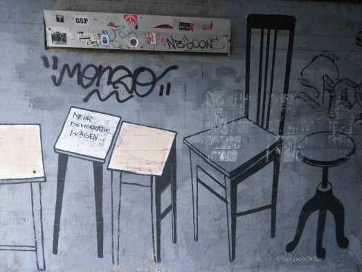 Auf dem unteren Foto ist ein Ausschnitt der Wandmalerei zu sehen, die ich letztes Jahr fotografiert habe. Sie befand sich in der Fußgängerunterführung an der Nürnberger Agnesbrücke. Schon damals waren die Street-Art-Kunstwerke beschmiert. In der Zwischenzeit wurden sie vollständig übermalt.