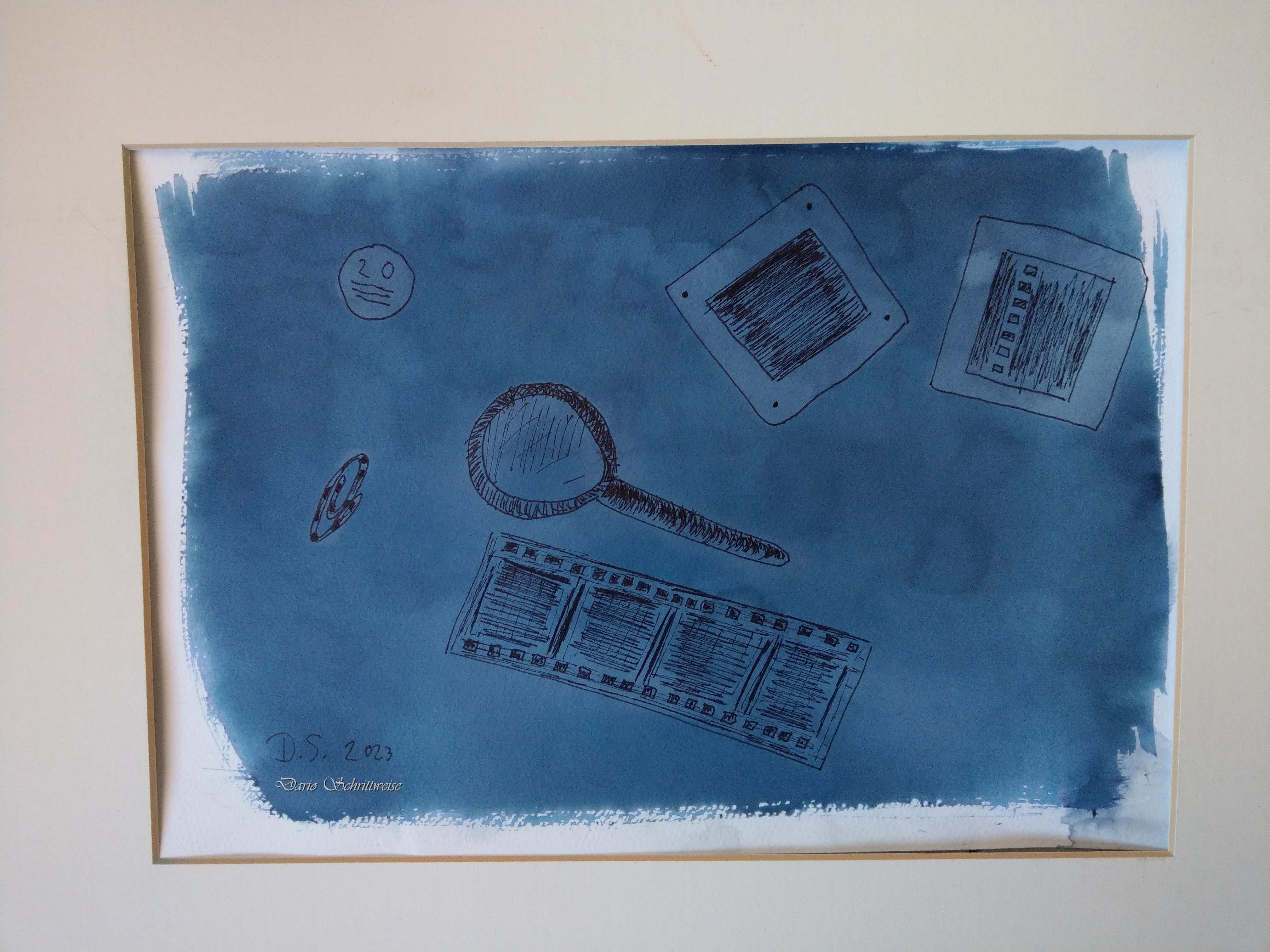 Cyanotypie und Zeichnung