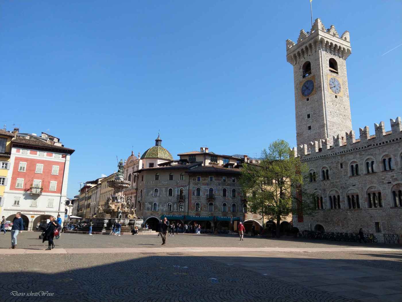 Neben dem Brunnen überragt der Stadtturm „Torre civica“ mit der großen Turmuhr den Platz. Der markante Turm wurde im 12. Jahrhundert auf den Überresten des Eingang in das römische Tridentum, der Porta Veronensis, gebaut. Der Turm wurde als Stadtgefängnis benutzt.